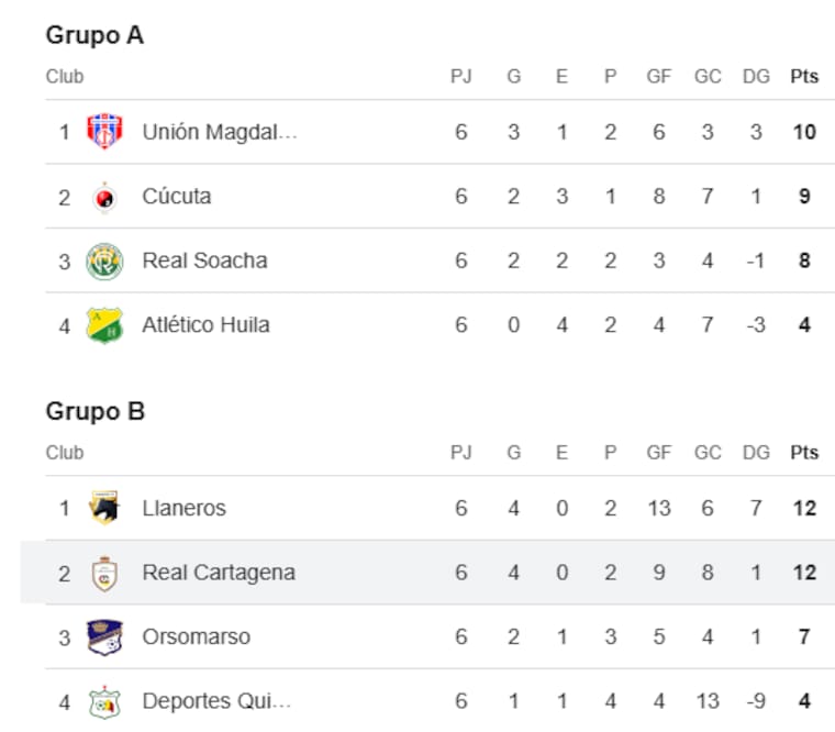 Grupo B: Orsomarso 0, Real Cartagena 1. Llaneros FC 4, Deportes Quindío 2.