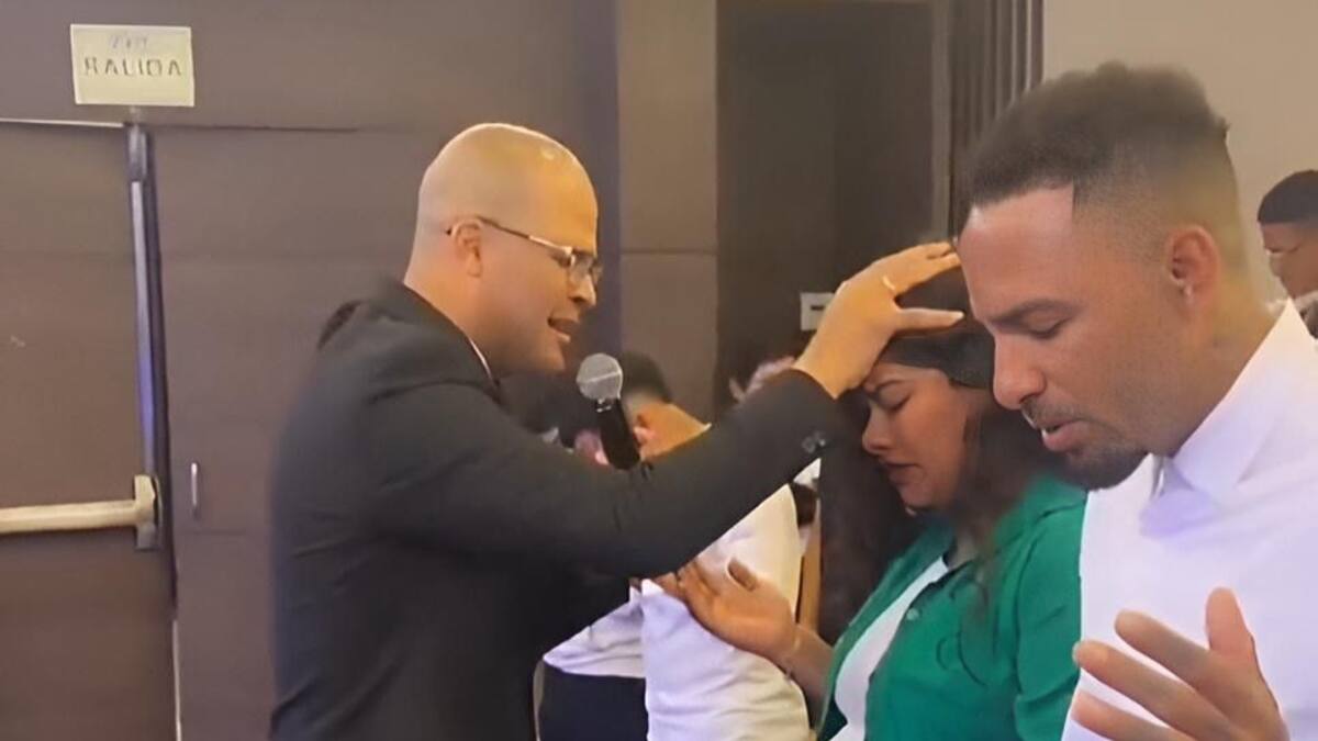 El ex futbolista oró por la señora que espera un bebé y luego habló ‘en lenguas’, como se le conoce en teología cristiana a un supuesto don concedido por el Espíritu Santo a una persona, el cual le permite manifestarse en múltiples idiomas que se desconocen.