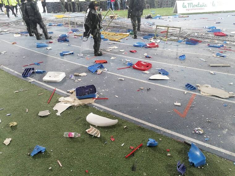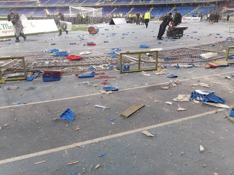 Varias personas lesionadas, entre ellas tres policías, dejaron los desórdenes provocados el domingo por hinchas que intentaron entrar al campo de juego en la final de la Copa Colombia entre América de Cali y Atlético Nacional, se informó este lunes.