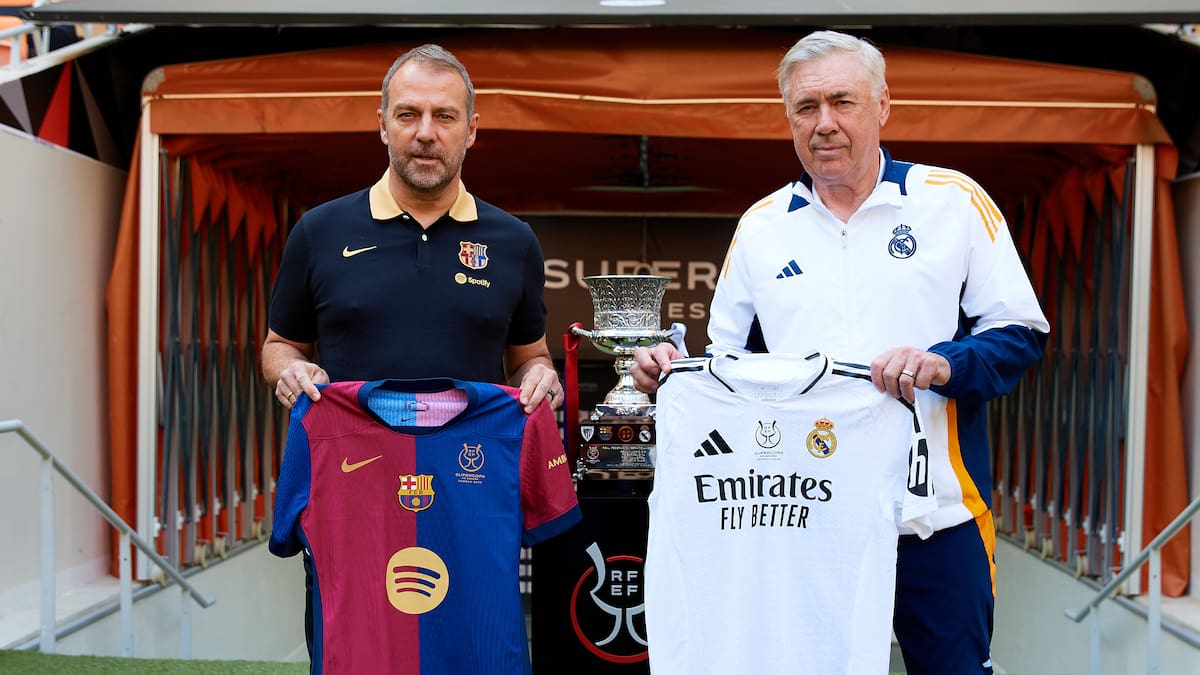 En su reto mayúsculo de lograr siete títulos en la temporada, el Madrid afronta su tercer peldaño tras coleccionar la Supercopa de Europa y la Copa Intercontinental, aunque tiene el mal recuerdo del 0-4 que le endosó el equipo culé en liga a finales de octubre, donde los puntas blancas cayeron en la telaraña del fuera de juego tendida por Flick.