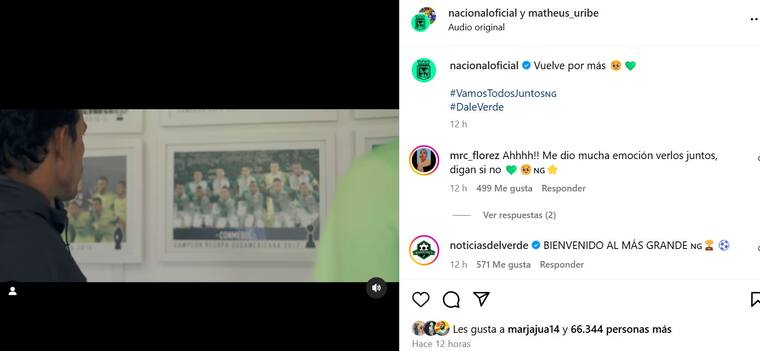 El Atlético Nacional preparó un video donde se observa a Alejandro Bernal y Diego Arias mostrando algunos de los momentos más importantes de Mateus Uribe en los años 2016 y 2015.