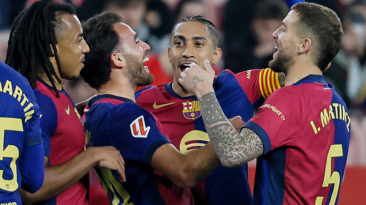 La primera parte, que empezó a toda pastilla, no deparó más goles pero sí un fútbol espectacular, competido y plagado de alternativas en el que los barcelonistas dominaron la posesión, pudieron adelantarse con zurdazo de Koundé tras un servicio de Lamine Yamal con la espuela pero debieron agradecerle a su portero las tablas al descanso.