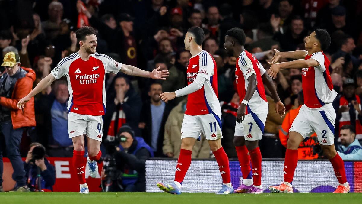 Era el primer gol de falta del Arsenal en su historia en las eliminatorias de Liga de Campeones. Vaya momento. Y vaya momento para que llegara el segundo. Doce minutos después y otra vez con Rice como protagonista, el Arsenal le asestó el segundo golpe.