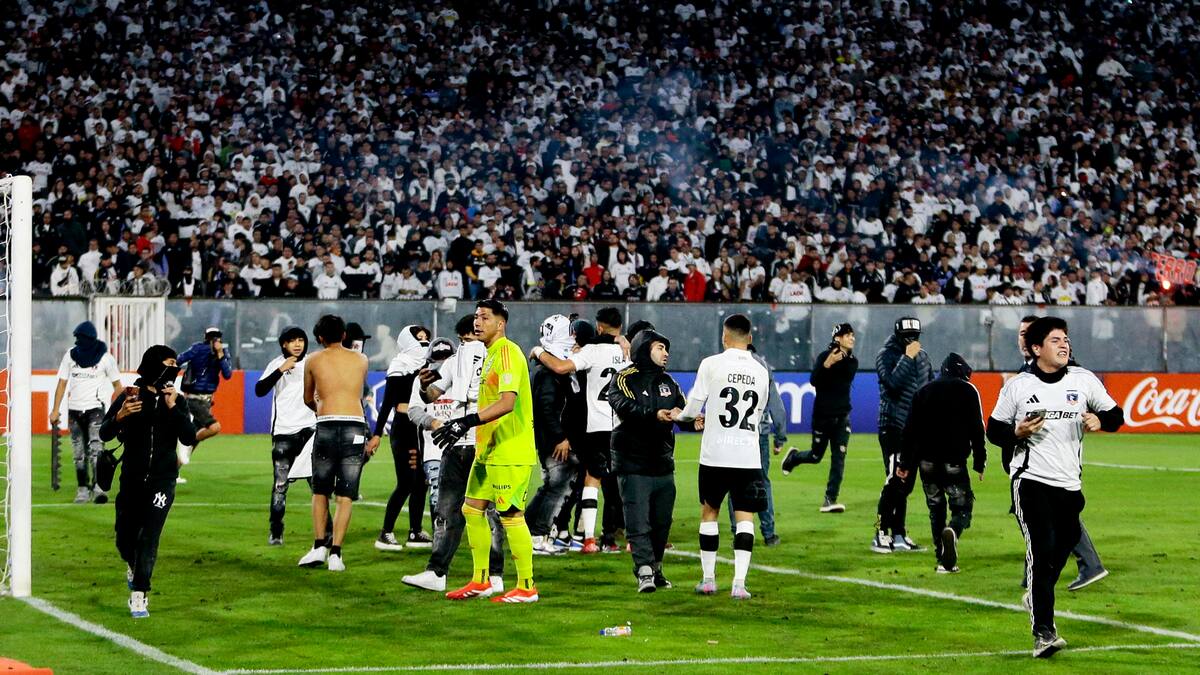 Las barras de Colo Colo invadieron la cancha en el minuto 72 y obligaron a Fortaleza a abandonar campo de juego cuando el partido estaba empatado sin goles, en reclamo por la muerte de dos personas en una estampida que ocurrió antes del comienzo en las afueras del recinto.