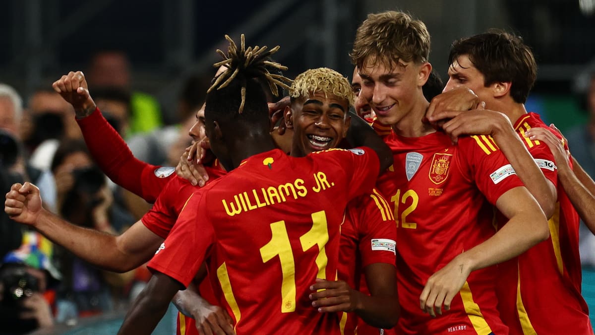 En un arranque de fútbol trepidante se produjo un intercambio de golpes. Cuando la fortuna, siempre necesaria en las grandes citas, cayó de lado español. Theo Hernández, que fue el primero en probar fortuna con un zurdazo, estrelló en la cruceta el segundo intento. No intimidó a España que intercaló llegadas, con Yamal cerca del gol tras un rechace fruto del marcaje de hasta cuatro rivales.