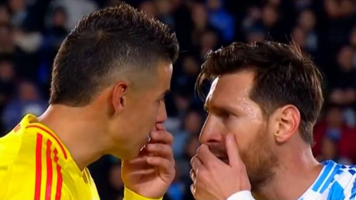 Un tenso cruce de palabras entre Lionel Messi y James Rodríguez quedó registrado por las cámaras de televisión durante el partido disputado entre Argentina y Colombia, luego de que el árbitro expulsara al jugador argentino Fernández.