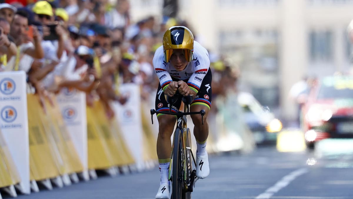 El belga Remco Evenepoel (Soudal Quick Step) demostró su condición de campeón del mundo y olímpico de la modalidad con una exhibición en la contrarreloj de 33 km disputada en Caen, en una jornada consideraba clave en la que Tadej Pogacar (UAE), segundo clasificado, pasó al mando de la general alejando en más de un minuto a su rival directo, el danés Jonas Vingegaard.
