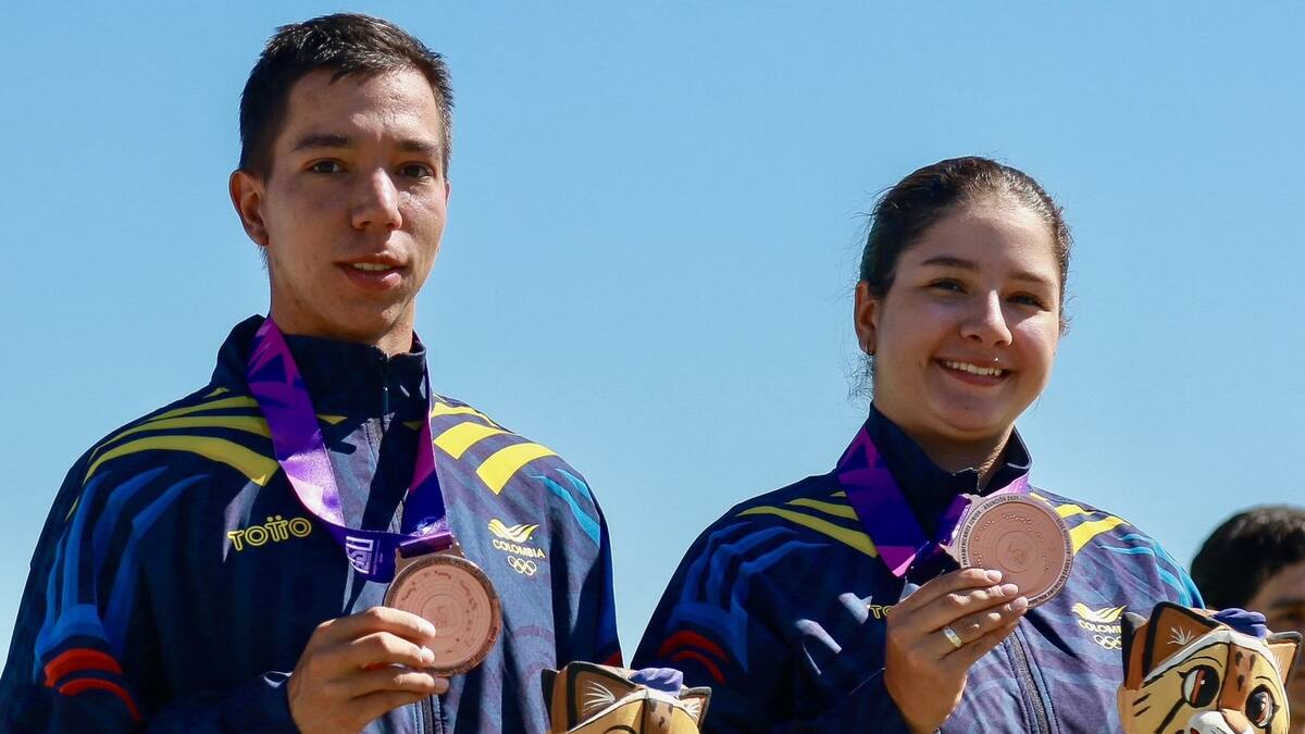 A primera hora, y por la medalla de bronce de la categoría de equipos mixtos compuesto, el equipo de Colombia, integrado por Isabella Sepúlveda y Sebastián Villegas, se impuso al de Costa Rica, con la representación de Valeria Villalobos y Joseph González, por una puntuación de 156-152.