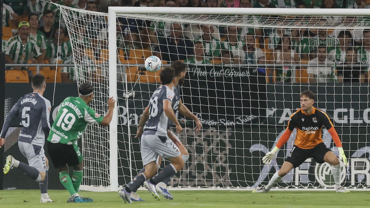 Para ello los visitantes salieron con las líneas adelantadas para presionar alto y tener alejados a sus rivales de la meta defendida por Álex Remiro, pero el Betis salió bien de esa presión y el colombiano Cucho Hernández hizo trabajar pronto al meta de la Real.