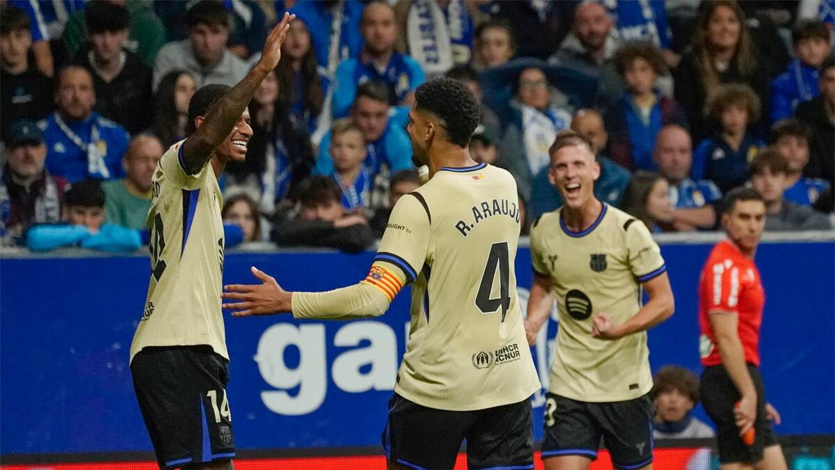El Barcelona aguanta la estela del Madrid tras un partido en el que se adelantó un correoso Real Oviedo y que obligó a los azulgranas a remontar en el segundo tiempo (1-3) con goles de Eric García, Robert Lewandowski y Ronald Araujo.