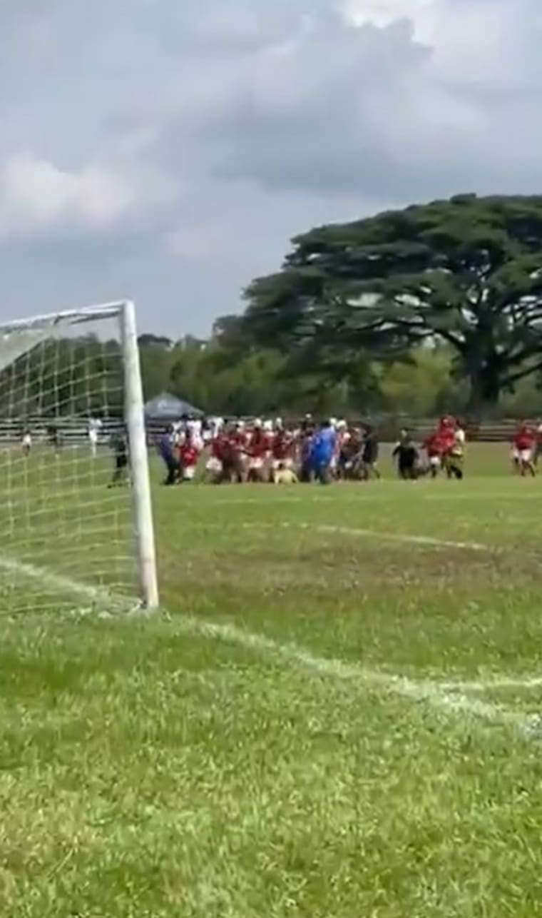 De repente, el jugador lo atacó por la espalda con un puño, desencadenando una violenta agresión de todos los otros jugadores.
