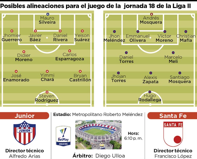También reaparecerán en la formación titular Daniel Rivera, expulsado en la agónica victoria 3-2 sobre Deportivo Pereira, y Didier Moreno, que también padecía un desgaste físico.