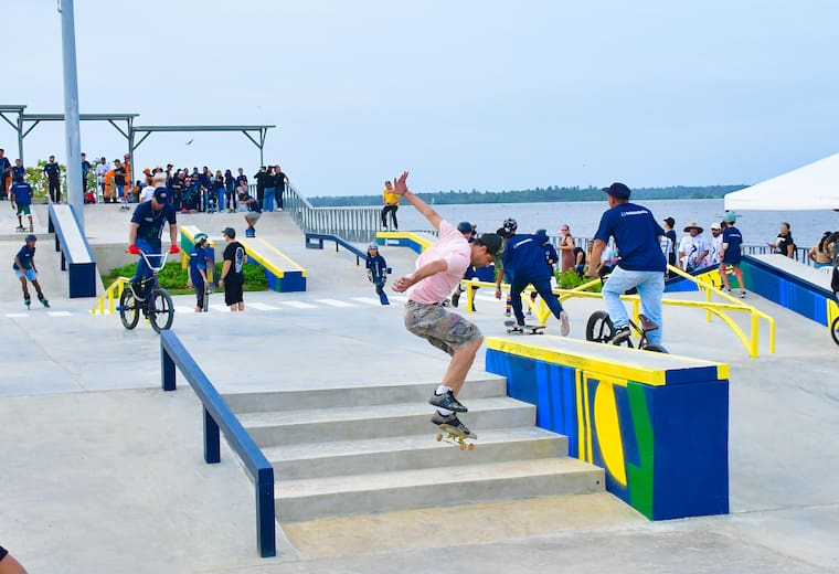 Son 2.400 metros cuadrados insertados en el que se ha convertido en un sitio emblemático de la ciudad y el más visitado de Colombia, frente a la majestuosa arteria fluvial, y justo detrás de la estatua de Shakira, como si la artista barranquillera también le diera su ‘espaldarazo’ al skateboarding. Es exactamente todo lo que querían esos niños, adolescentes y jóvenes que se sostuvieron en pie de lucha cuando eran rechazados por todos.