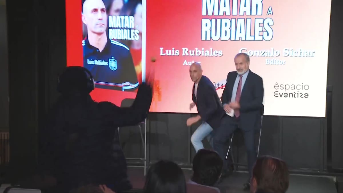Luis Rubiales, expresidente de la Real Federación Española de Fútbol (RFEF), fue atacado por un hombre que le tiró huevos durante el acto de presentación de su libro ‘Matar a Rubiales’, que tiene lugar este jueves en Madrid.