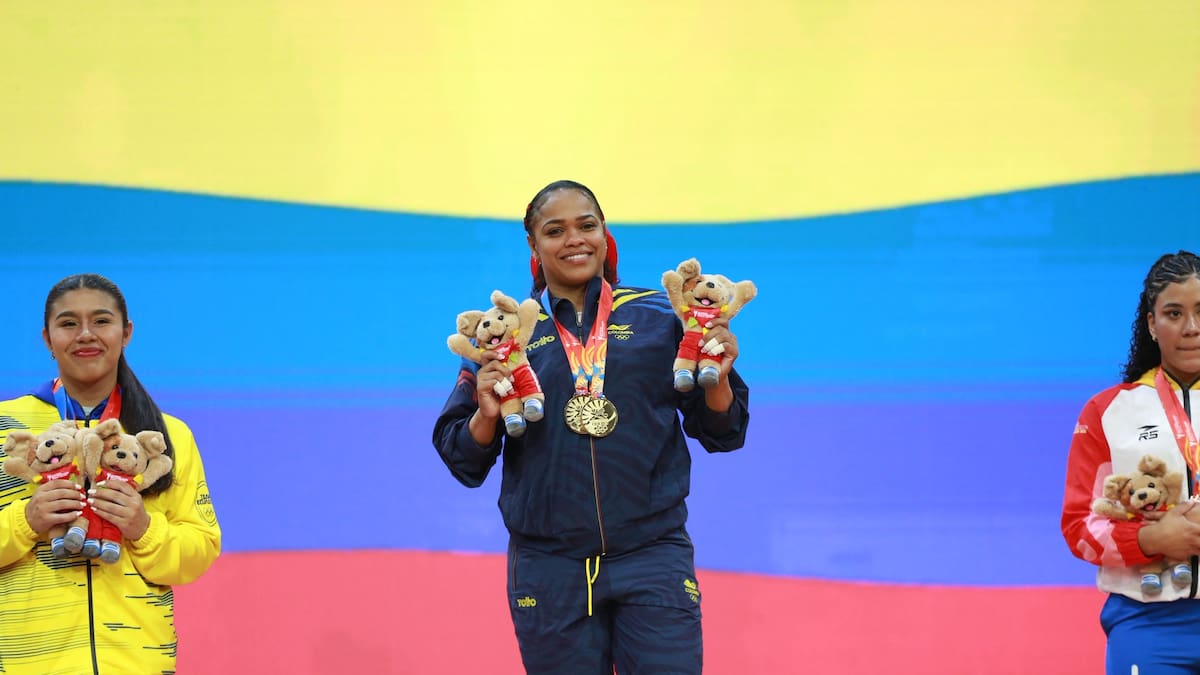 Durante las pruebas disputadas el lunes, también ganaron oros en las categorías masculinas Héctor Viveros (-60 kilos), Héctor García (arranque -65 kilos), ambos en arranque; y Yeison López (-88 kilos) por partida doble en arranque y envión.
