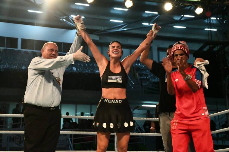La modelo y boxeadora derrotó la noche de este viernes, por la vía del sueño, a la pegadora barranquillera Angie Barca (2-13) en el quinto salto. Henao, residente en Panamá, llegó a dos triunfos en su carrera, en la cual también acumula tres empates y una caída.