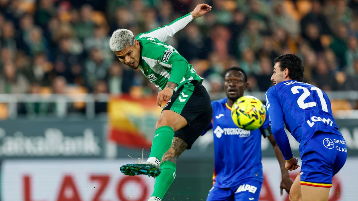 Aunque los hombres de Bordalás trataban de defender lejos de su portería, era el Betis el que dominaba el comienzo del encuentro y el primer gol, un cabezazo espléndido de Ruibal a centro de Antony, certificaba el mejor arranque local y bendecía la alineación del polivalente futbolista catalán como extremo izquierdo.