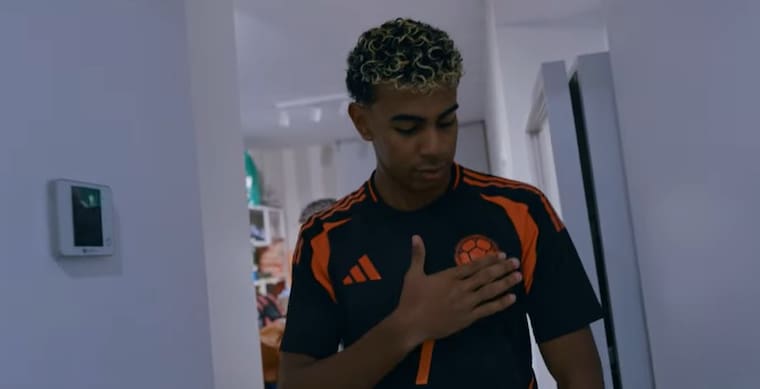 Lamine Yamal fue noticia este lunes en nuestro país, pero esta vez no por una gambeta imposible o un gol decisivo con el FC Barcelona, sino por un detalle simbólico que no pasó desapercibido. En el estreno de su canal de YouTube, la joven estrella azulgrana apareció usando la camiseta negra con naranja —segunda equipación—de la selección Colombia, específicamente la ‘7’ de Luis Díaz, un gesto que rápidamente se hizo viral en medios y redes sociales.