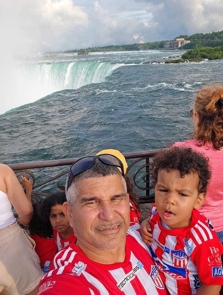 “Yo tengo 20 años viviendo en Toronto, Canadá. Aquí no tenemos mucho verano, siempre uno tiene que estar con abrigo y chaqueta, pero apenas llega el bendito verano yo de una me engancho mi camiseta Junior. Esa es mi identificación acá. Incluso, muchas veces viajo a otros países y siempre me voy con mi familia uniformados con la camiseta de Junior. La gente nos mira y yo orgulloso con mi rojiblanca puesta. Cuando me la pongo acá en Toronto y otro colombiano me ve, de una me dice: –Barranquillero, costeño–, eso me gusta, me hace sentir feliz. Esa camiseta para mí es lo máximo, estemos mal o estemos bien yo siempre me la voy a poner con orgullo”, afirma Ramiro Montes González, de 51 años.