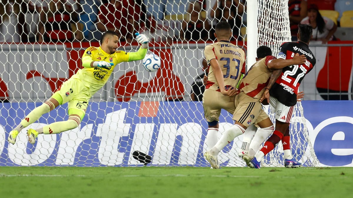A los 40 minutos de la primera parte, un exceso de confianza en la salida le costó caro al Fla. La jugada del empate nació de un error de Jorge Carrascal, quien perdió la posesión en el círculo central ante la presión colombiana.