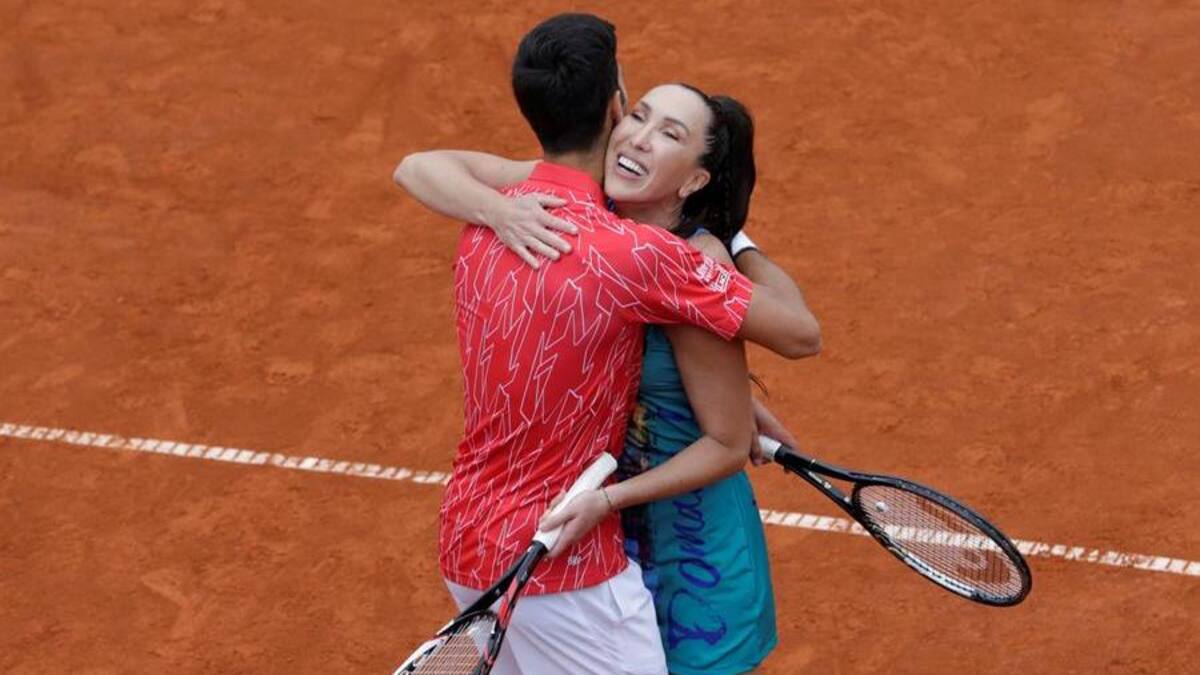 Djokovic y Jankovic se abrazaron efusivamente en la cancha para celebrar un punto.