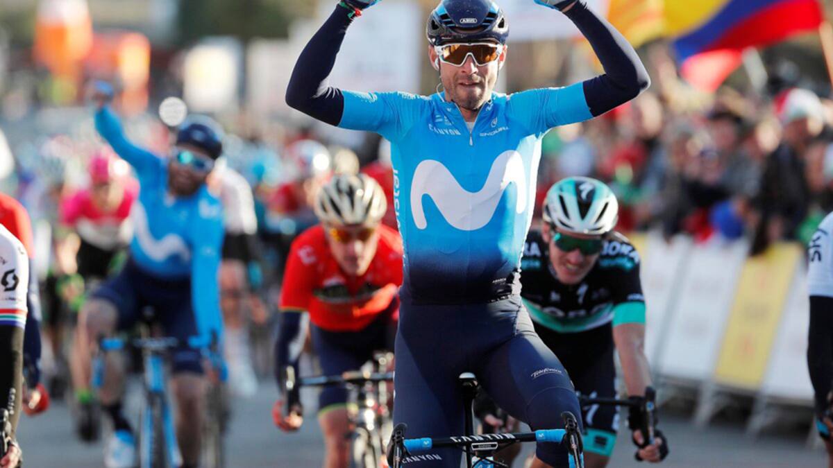 El veterano ciclista murciano, de 37 años, puso la guinda con su triunfo al gran trabajo del Movistar, que imprimió un ritmo muy duro en los últimos 50 kilómetros de la etapa, en los que el viento soplaba muy fuerte.