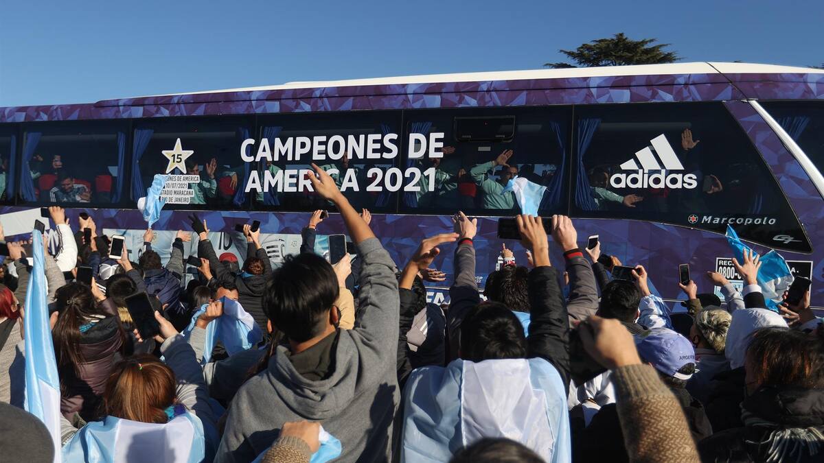Los dos autobuses tenía una estampa con el número 15, por el número de conquistas de Copa América de la Albiceleste, y una leyenda que recordaba que se consiguió en el mítico Maracaná de Río de Janeiro.