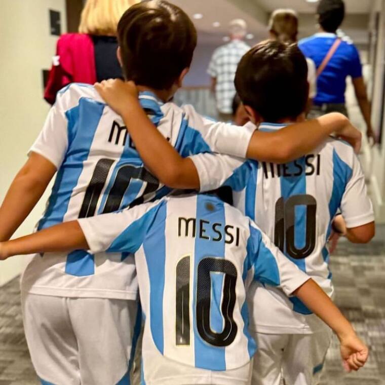 Más adelante, la esposa de Messi publicó una foto de sus tres hijos abrazados, todos de espalda mostrando el número 10 de la camiseta albiceleste con el nombre Messi, añadiéndole un emotivo mensaje: “Juntos siempre. Vamos amor @leomessi”.