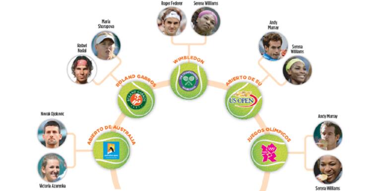 El 2012 fue un buen año para el tenis, con cambios incluidos. Los cuatro fantásticos sacaron lo mejor de sus súper poderes y demostraron por qué tienen madera para seguir en lo más alto del ránking masculino de la ATP. En las mujeres, el asunto fue diferente, pues aunque Victoria Azarenka es en teoría la mejor (por su actual No. 1), Serena Williams sacó en mayor medida su garra tenística.