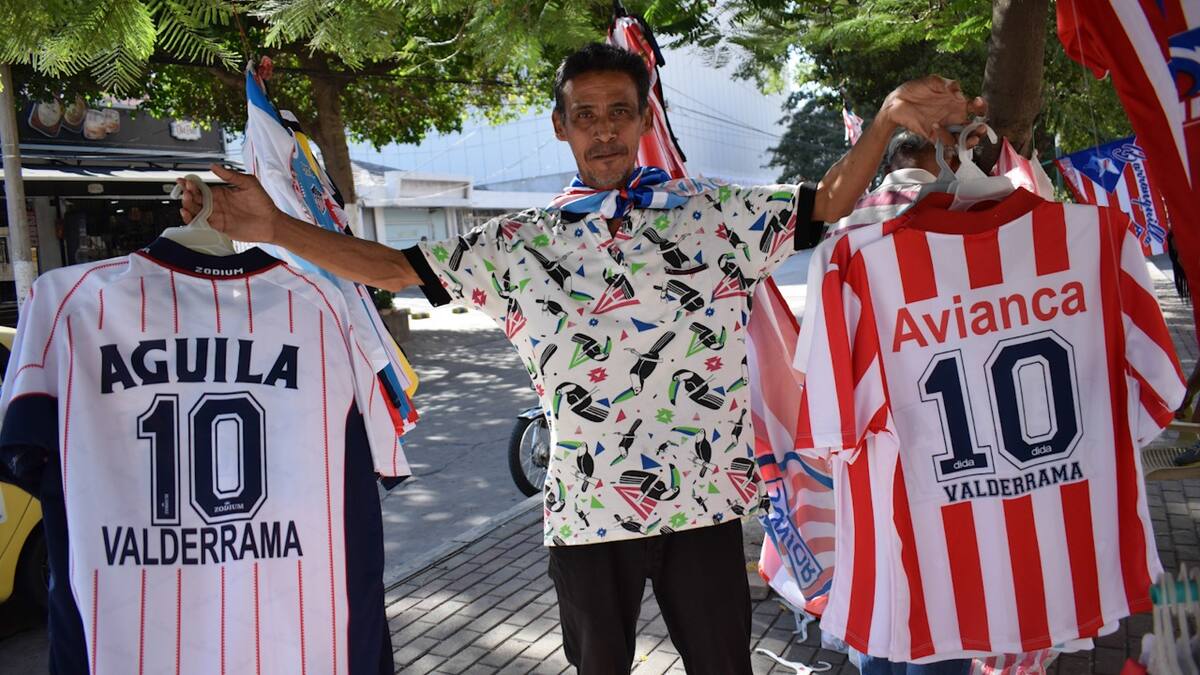 Vendedores estacionarios aprovechan el auge de la gran final de la Copa Sudamericana entre Junior y Atlético Paranaense para vender sus productos. Camisetas y gorras del Tiburón son las más vendidas.