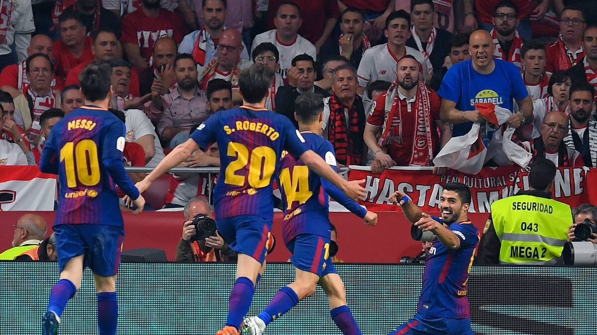 El uruguayo abrió el marcador a puerta vacía (14), Leo Messi amplió el marcador (31) y después volvió a aparecer el 'pistolero' para marcar el 3-0 (40). Andrés Iniesta puso el 4-0 (52) y Philippe Coutinho cerró la cuenta de penal (69), dando al Barcelona su cuarta Copa del Rey consecutiva.