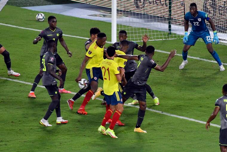 El gol de Yerry Mina resultó ‘fugaz y pasajero’ porque después de la revisión en el VAR sancionaron una mano.