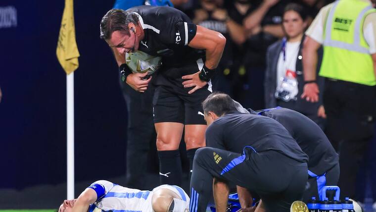 A pesar del tiempo que se perdió en esa atención a Messi, y en otra situación similar exagerada por Lisandro Martínez, el árbitro brasileño Raphael Claus (Brasil) solo adicionó un minuto. Increíble.