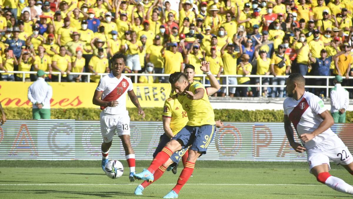 Desde el primer minuto Falcao García le dio un susto a los Incas al definir demasiado arriba una buena bola que le puso James Rodríguez tras recuperación de Barrios en esa idea de retomar el balón rápido y en el campo rival.