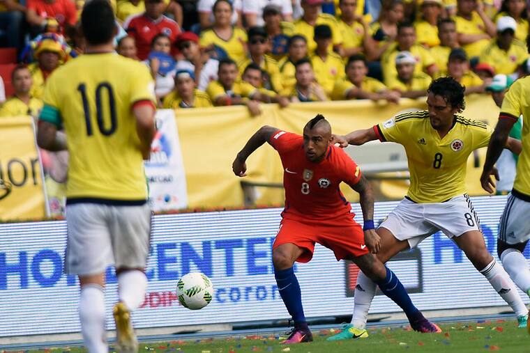 Chile reaccionó y al 16' Arturo Vidal de volea le pegó al arco colombiano. El balón se fue por fuera.