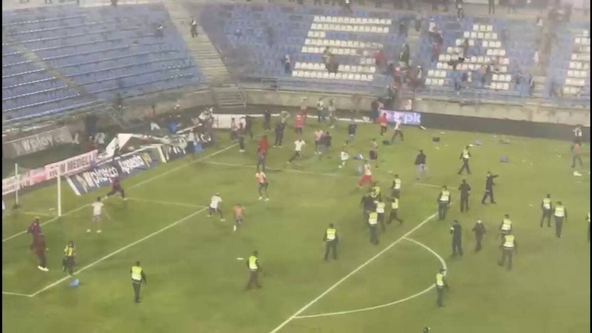 Cuando el cronómetro marcaba ese tiempo y el partido se encontraba 1-1, fanáticos de ambos equipos comenzaron una batalla campal que terminó con heridos, detenidos y la cancelación del juego por falta de garantías (lo cual le podría conceder el triunfo a Junior en el escritorio por 3-0).
