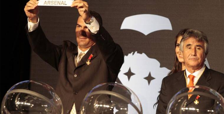 'Los exjugadores, de Colombia, Farid Mondragón (i) y de Perú, Perciyo Roja (d) participan hoy, el sorteo de emparejamiento de los grupos de la Copa Libertadores de 2013 en la localidad de Luque, a 15 kilómetros de Asunción, Paraguay.sLa Confederación...