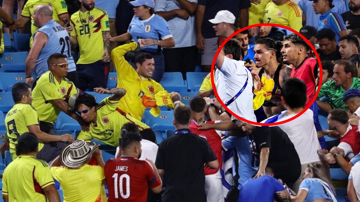 Como se sabe, varios jugadores uruguayos, entre ellos Darwin Núñez y Ronald Araújo saltaron a la grada para pelear con hinchas colombianos una vez finalizado el partido.