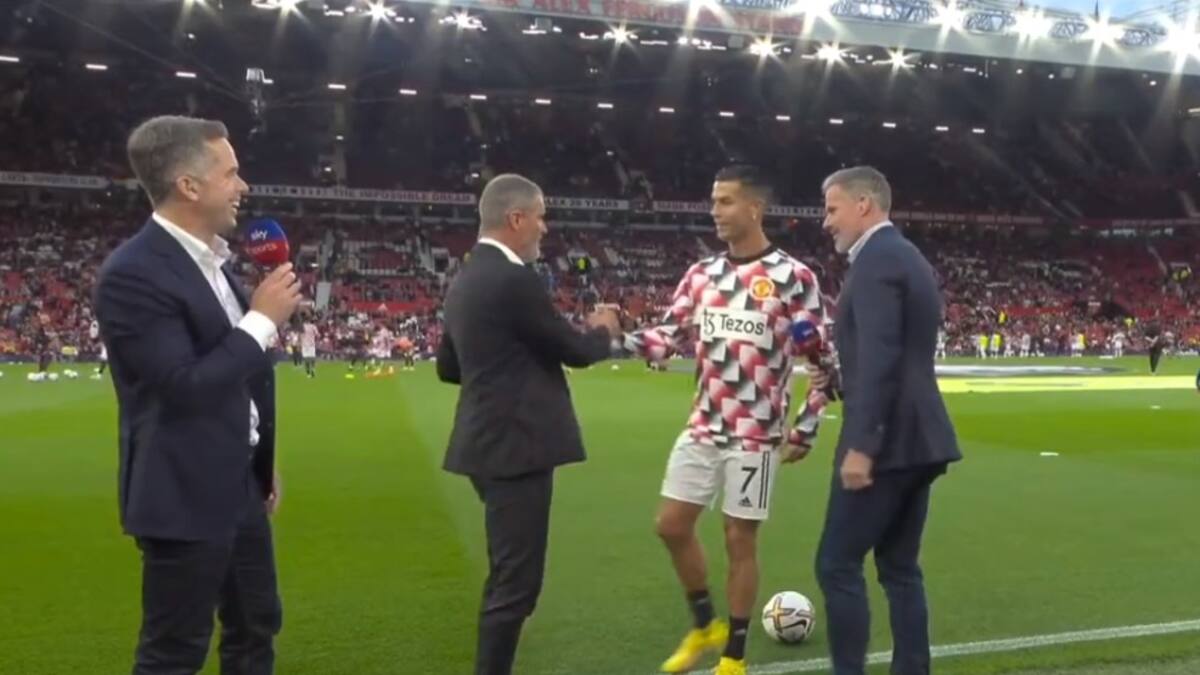En la transmisión quedó grabado el momento en que Ronaldo se niega a darle la mano a Carragher, quien incluso le hizo el gesto para que lo saludara.