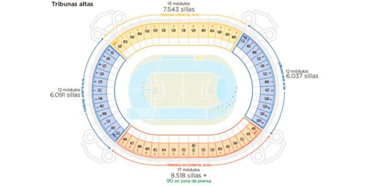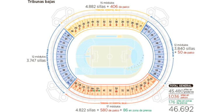 El resultado en occidental alta: 8.518 sillas repartidas en 17 módulos, unos más amplios que otros y con el del centro reducido por el espacio estipulado para los medios de comunicación.