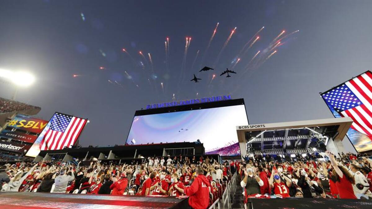 Los aficionados, como ya había quedado establecido, no han ocupado las primeras filas de asientos del Raymond James Stadium, primero en la historia de la NFL en el que el equipo local juega el partido del Super Bowl, al estar cerradas para crear distancia entre los aficionados y los jugadores.