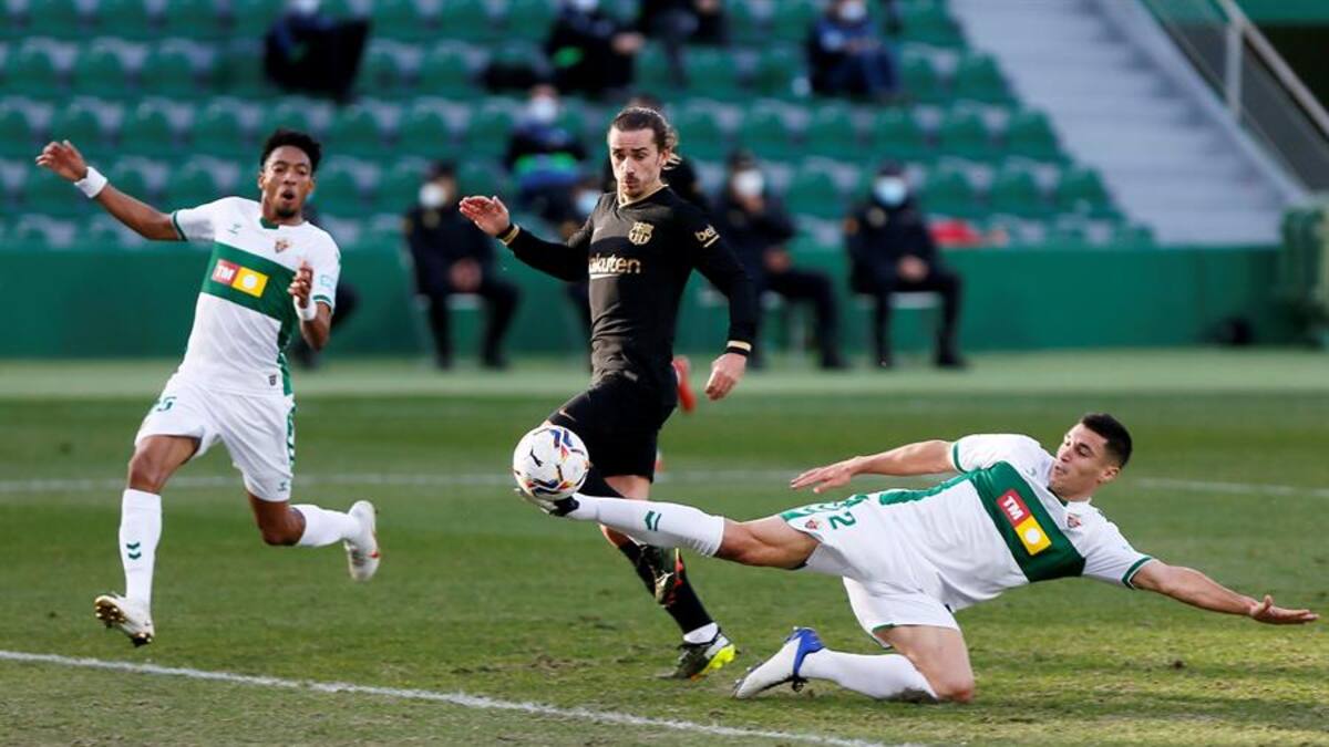 El Barcelona logró una victoria sin brillo en Elche (0-2) que le permite mantener su racha triunfal a domicilio en LaLiga y agravó un poco más la situación del equipo ilicitano, que encadena su decimotercer partido sin ganar.