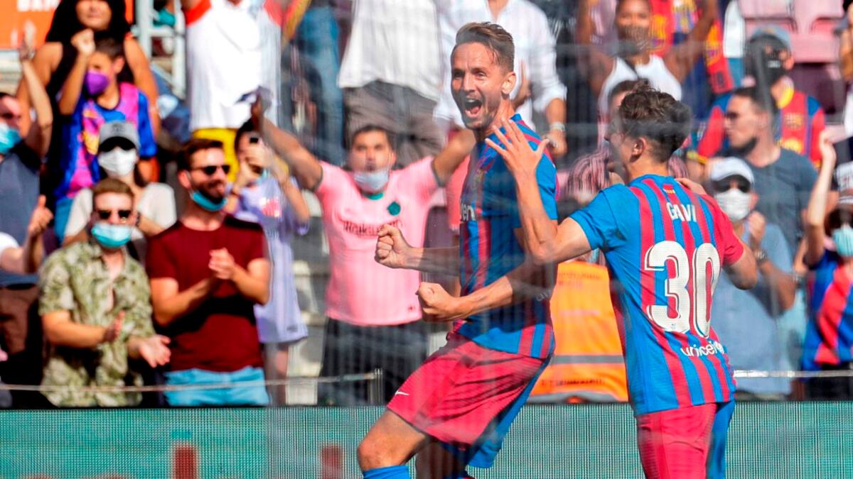 En una rápida transición, Dest, también desde la izquierda, habilitaba a Luuk de Jong para que batiese a Aitor desde la frontal y estrenase su cuenta goleadora como azulgrana antes del cuarto de hora (2-0).