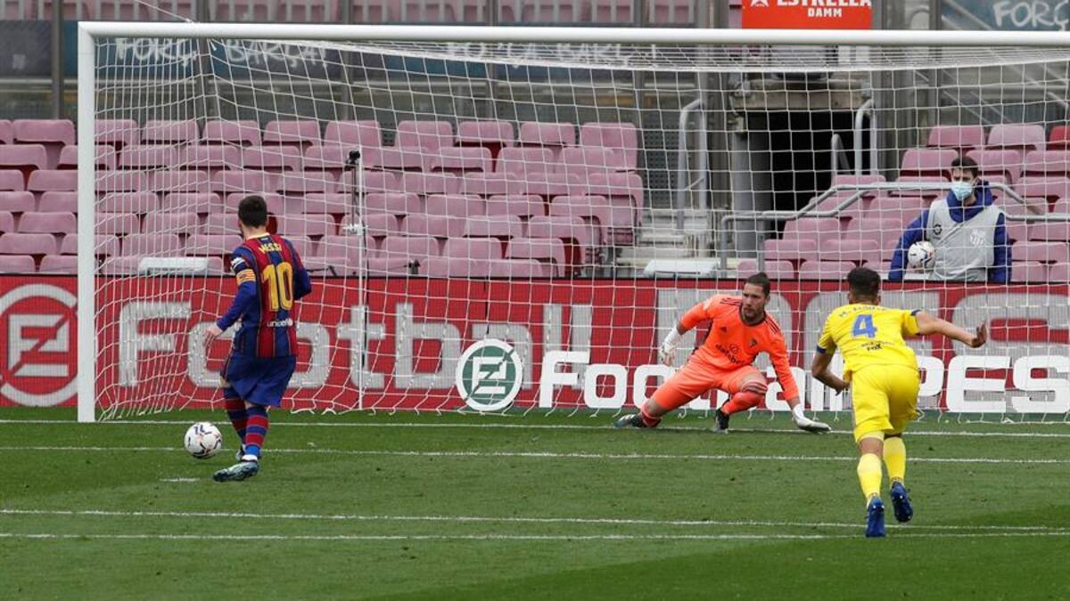 A la tercera fue la vencida y Messi goleó contra un rival que se le resistía, si bien el Barça no pudo sumar los tres puntos. Lo hizo de penalti, en el minuto 32, aprovechándose de la pena máxima forzada por Pedri. El argentino engañó a Ledesma con un disparo sutil y raso con la zurda.