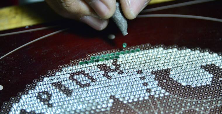Los veinte artesanos mexicanos, cuyos nombres no se dieron a conocer, trabajaron durante varias semanas para fabricar las placas, aplicar la pintura de las banderas de los 167 países afiliados al CMB y colocar manualmente las 3.017 esmeraldas.