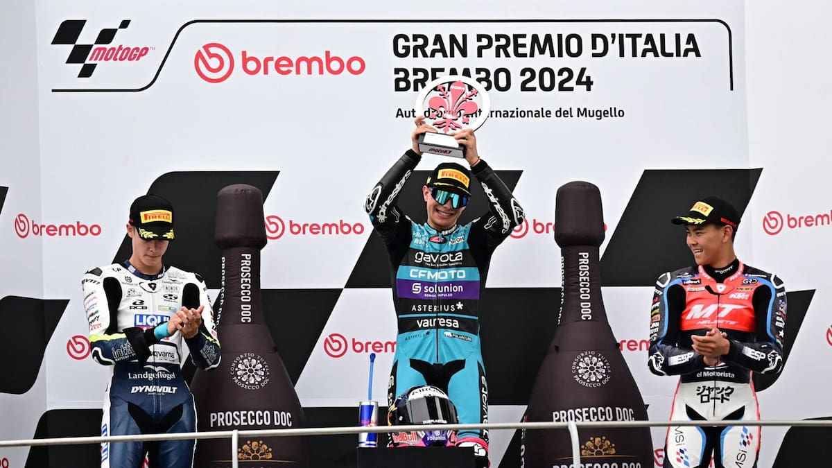 El colombiano de origen español David Alonso (CFMoto) firmó su quinta victoria de la temporada de manera magistral al vencer el Gran Premio de Italia de Moto3 disputado en el circuito toscano de Mugello.