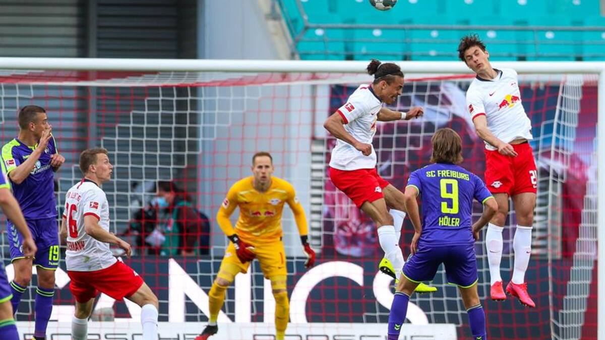 En el descuento hubo un momento de agonía para el Leipzig cuando Robin Koch marcó para el Friburgo; pero el VAR anuló el gol, por fuera de juego.