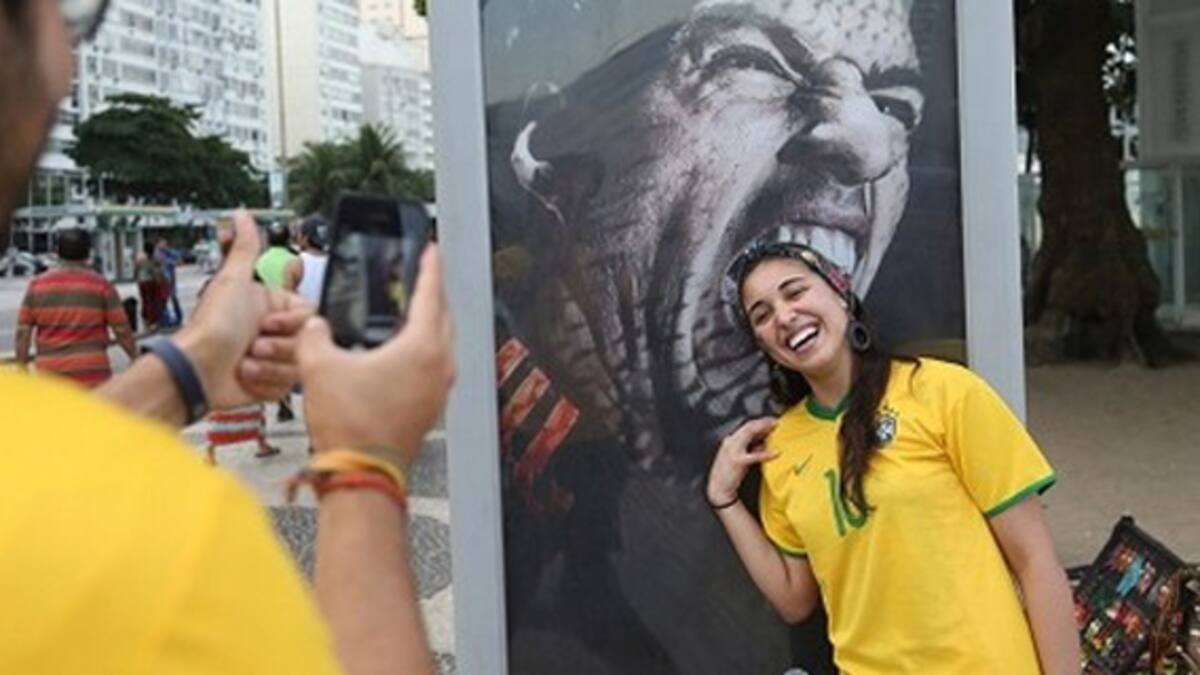 Pero ahí no para todo, el furor es tanto que en las playas de Copacabana decenas de transeúntes se detienen a tomarse fotos delante de un aviso publicitario con una foto de Luis Suárez celebrando un gol con la boca abierta. Una total sensación.