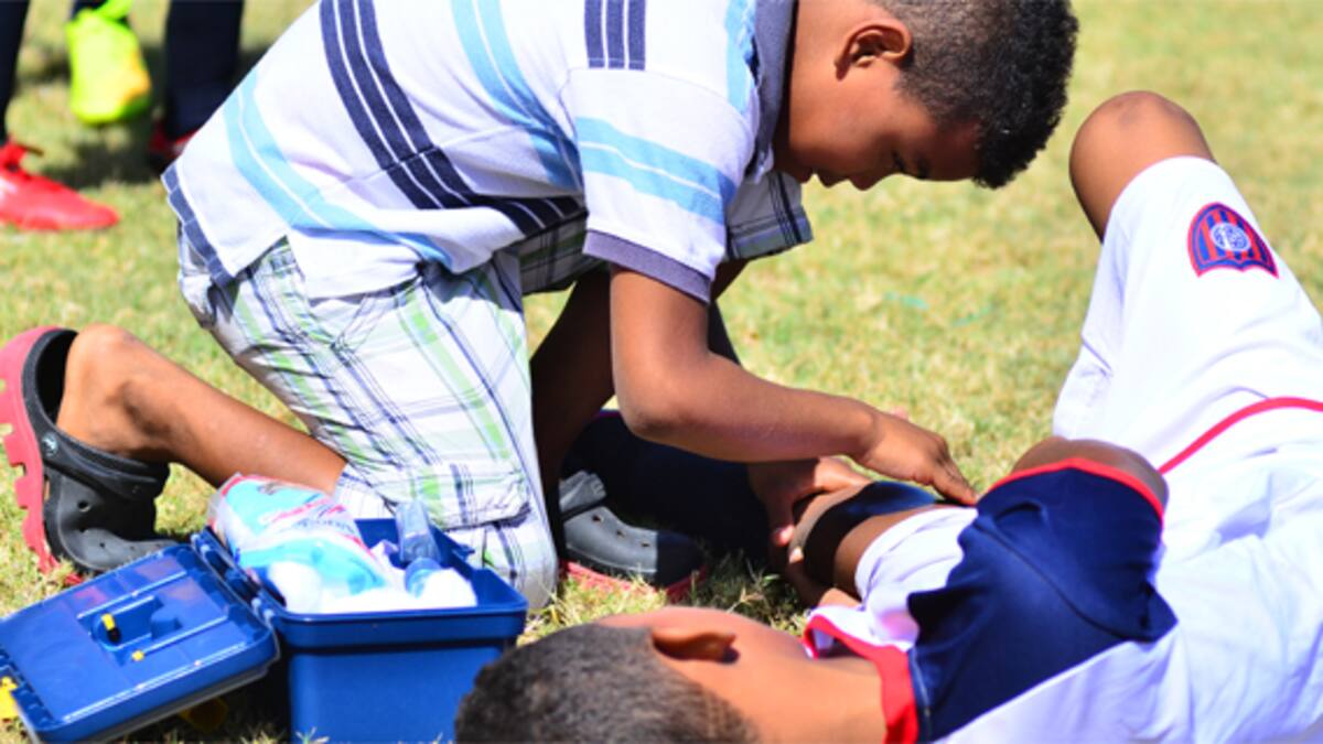 El pequeño de 10 años dice que conoce todos los medicamentos que hay en la caja con la que presta los primeros auxilios a sus compañeros.