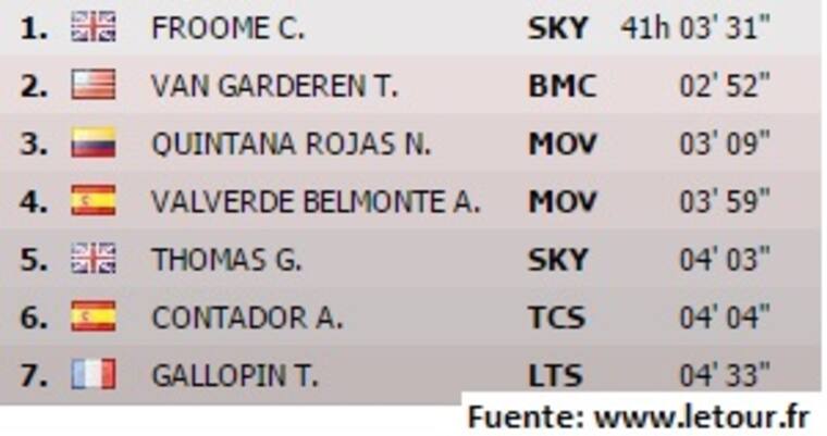 Los resultados de la jornada no alteraron el orden en la clasificación general, un día después que Froome afianzó como líder tras una impresionante 10ma etapa de montaña.